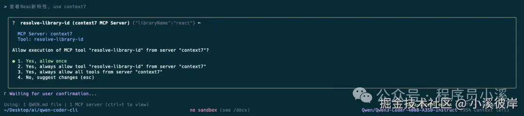Qwen Code CLI支持使用命令行一键添加MCP,也可以直接在 settings.json 文件中进行配置,其他MCP操作和Gemini CLI保持一致