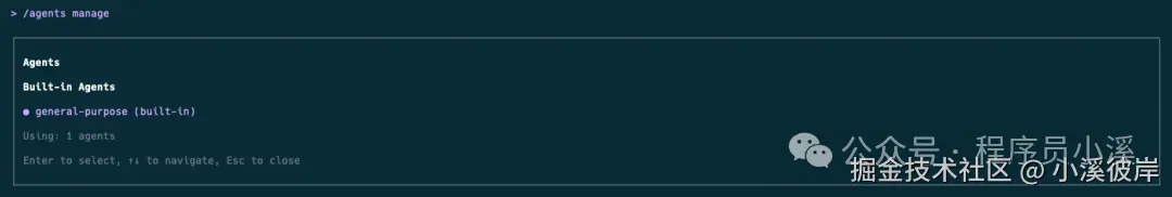 - manage:打开交互式管理对话框以查看、编辑和删除现有子代理,用法:/agents manage