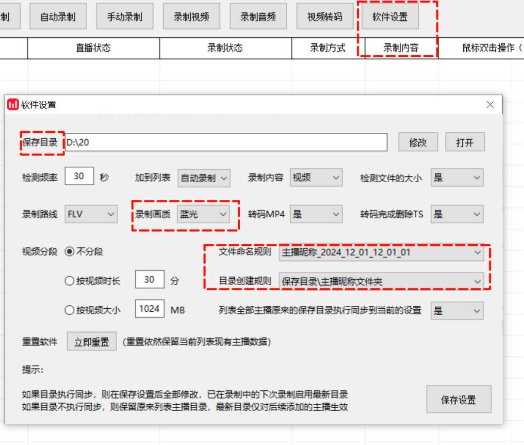 在使用之前,先设置一下保存目录、画质、文件名规则。