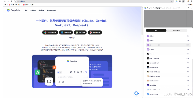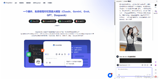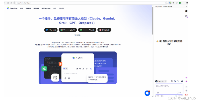 装完插件后,在任何网页上点击右上角的DeepSider图标,就能打开侧边栏选择你需要的模型。
