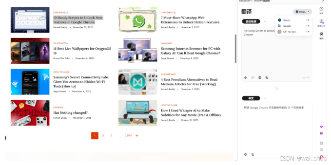 DeepSider还内置了DeepL、谷歌翻译、GPT 4omini三大翻译源,在遇到看不懂的单词或短句时,都可以直接调用侧边栏快速翻译成中文。