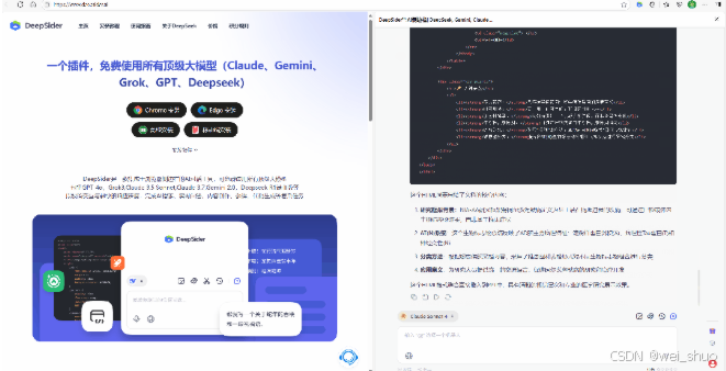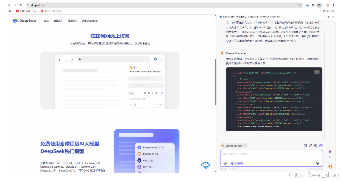 你可以一边在网页上刷视频,一边让DeepSider在旁边替你写代码、写文章、画图、解析文档,非常便捷。