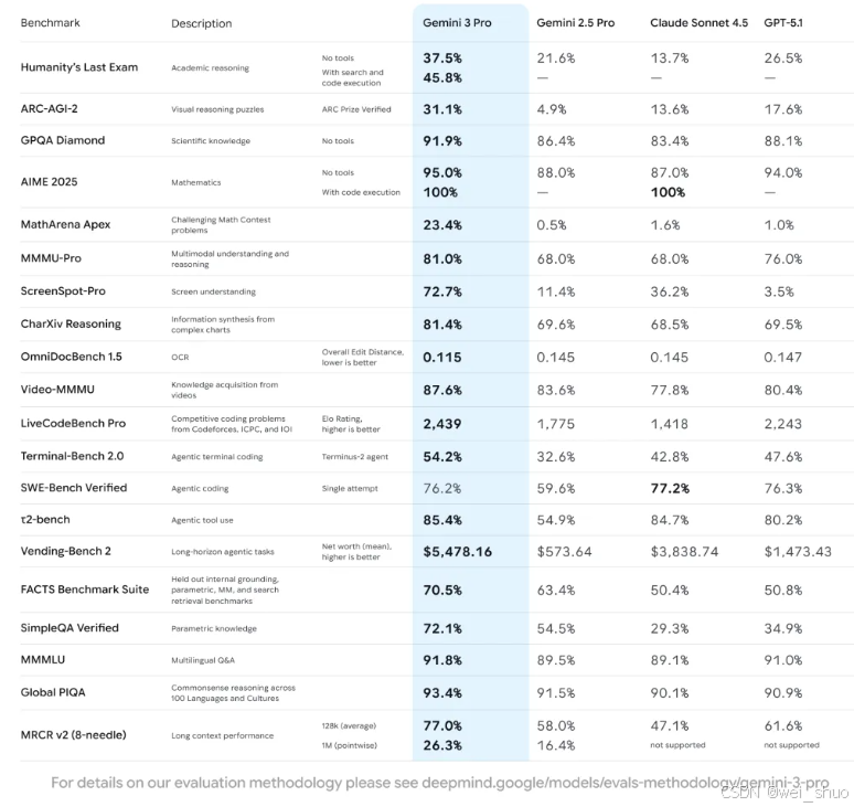 根据Model Card披露的数据,Gemini 3.0在推理、多模态等基准上实现了全方位的霸榜。