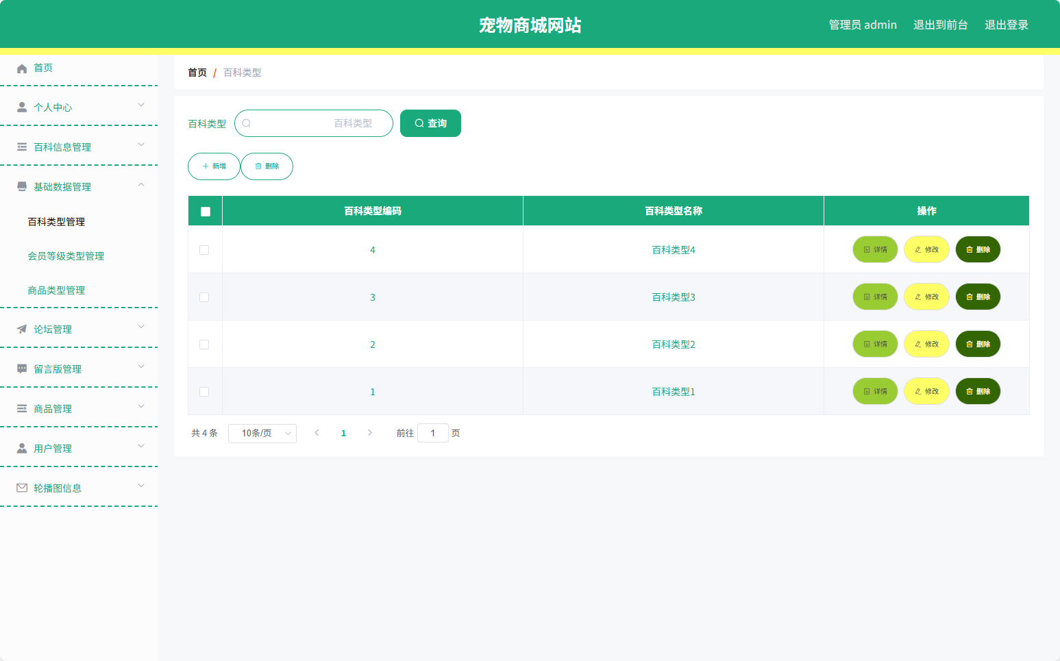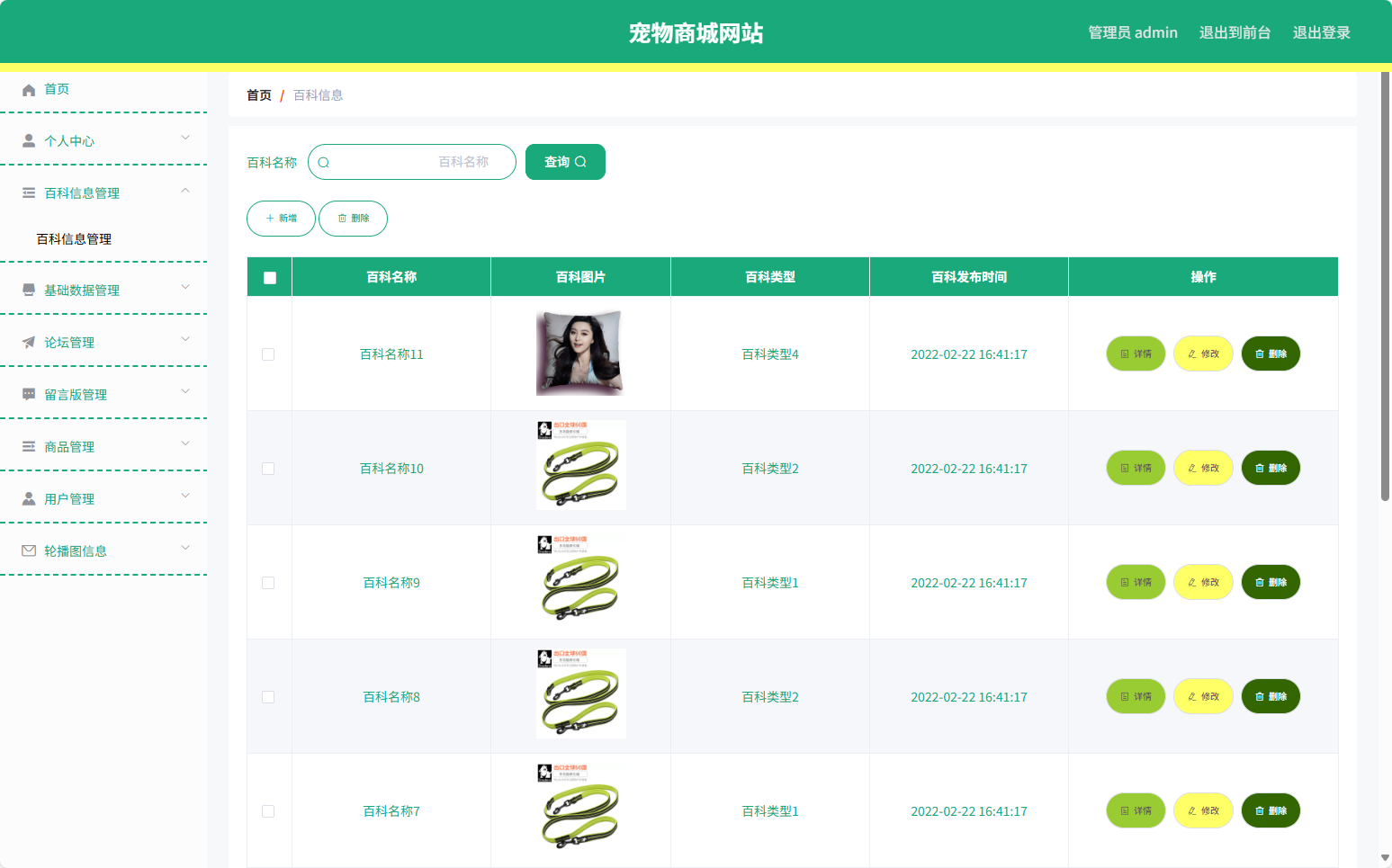| 管理员功能 | 百科信息管理 |