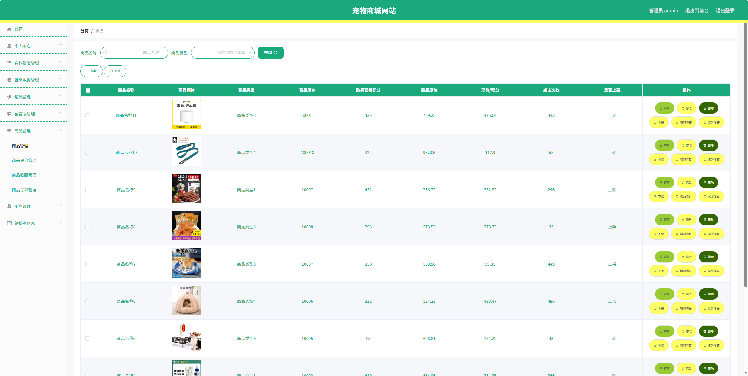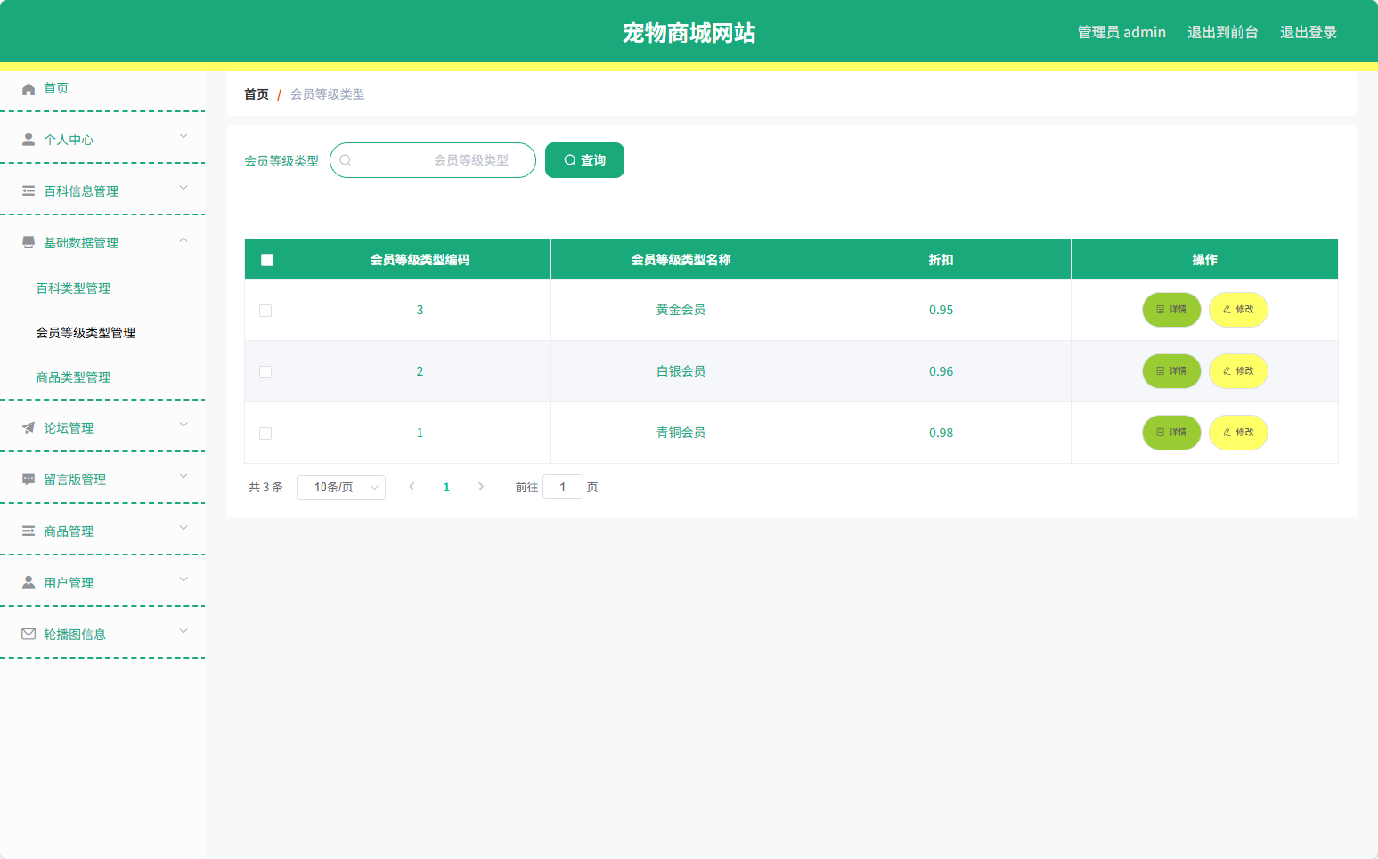 | 管理员功能 | 基础数据管理:百科类型管理、会员等级类型管理、商品类型管理 |
