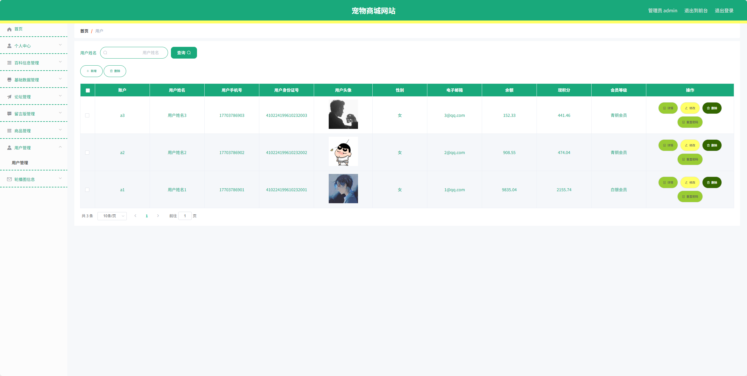 | 管理员功能 | 用户管理 |
