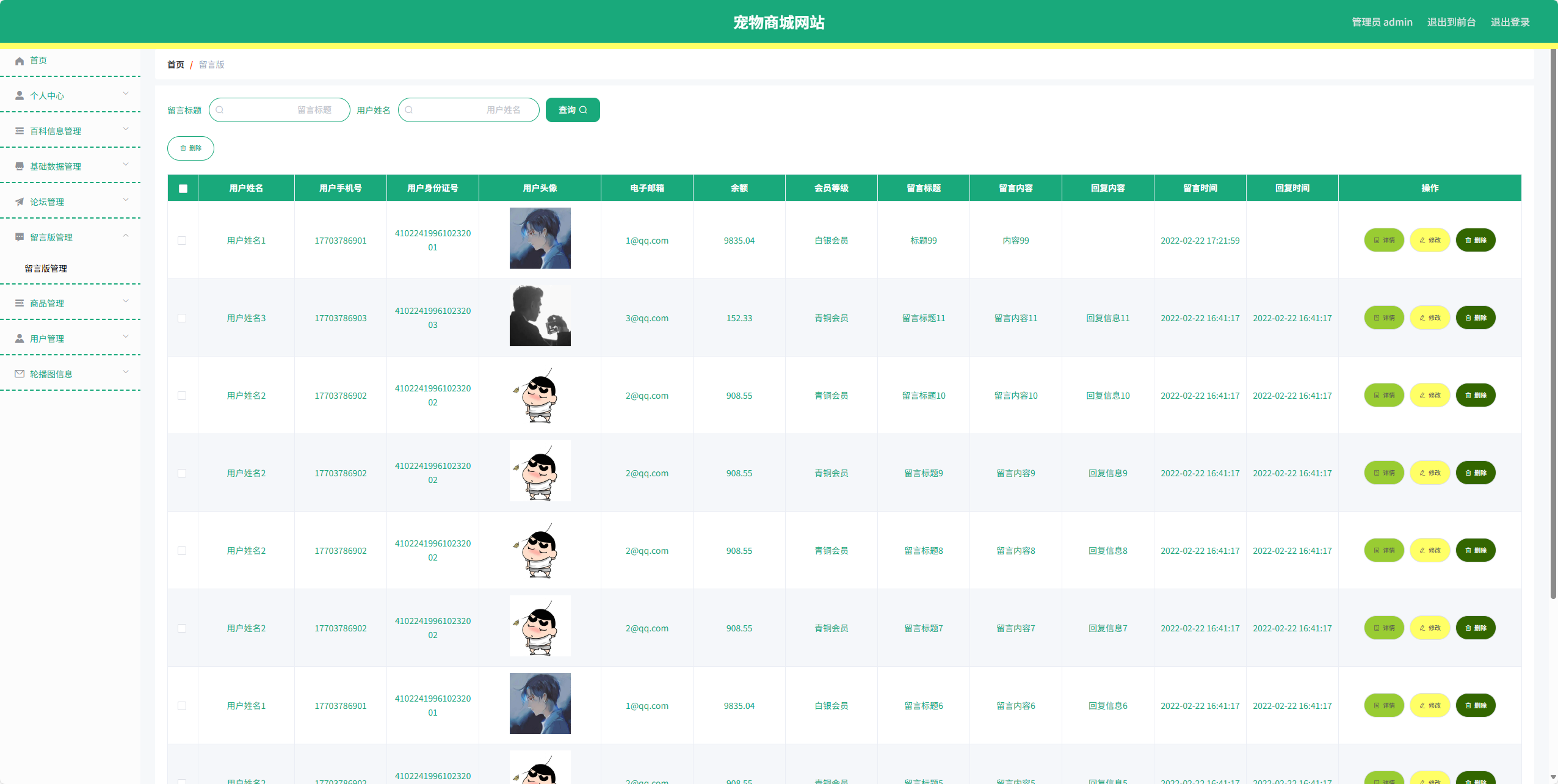 | 管理员功能 | 留言版管理 |