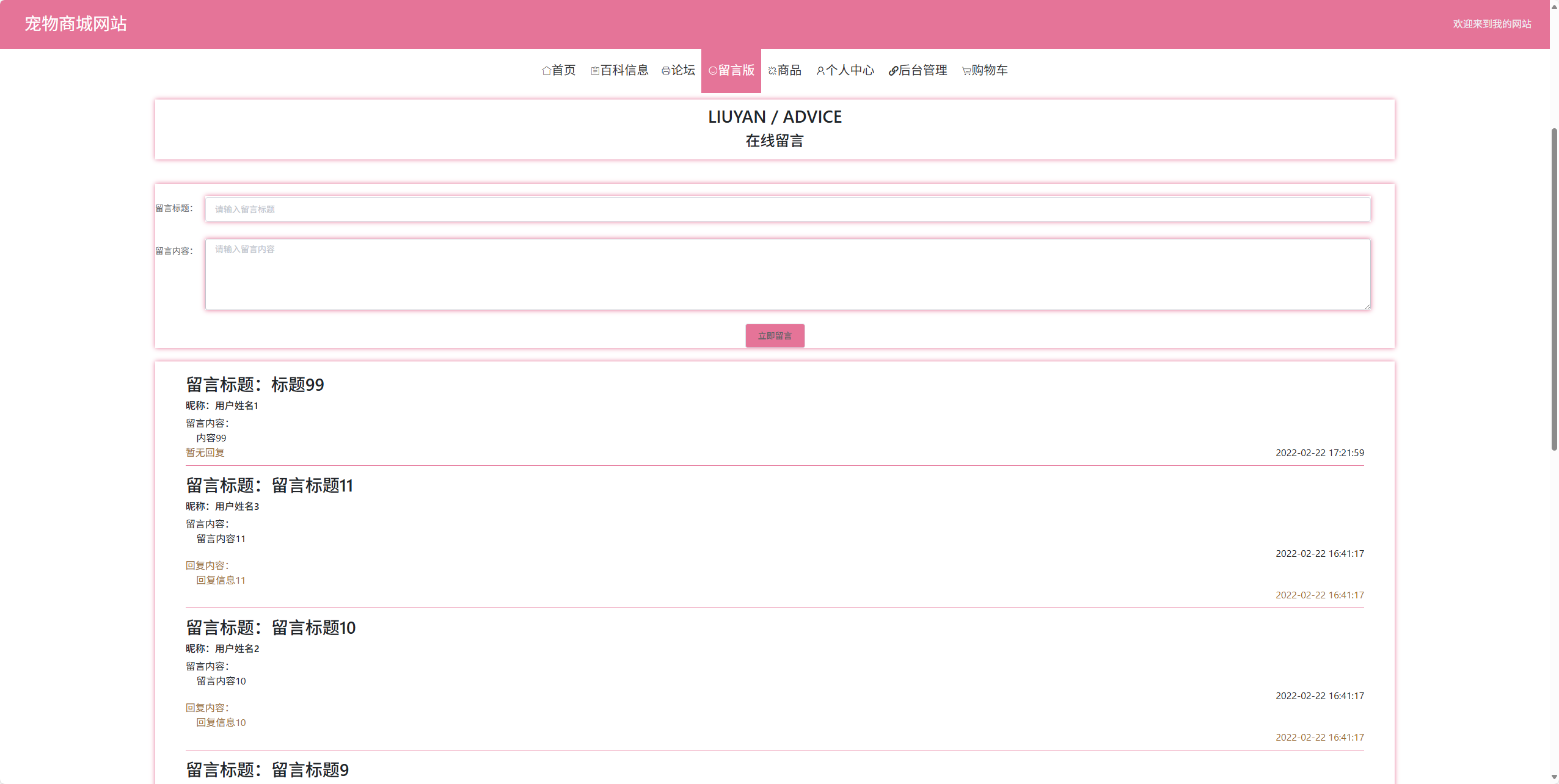 | 用户功能 | 留言版 |
