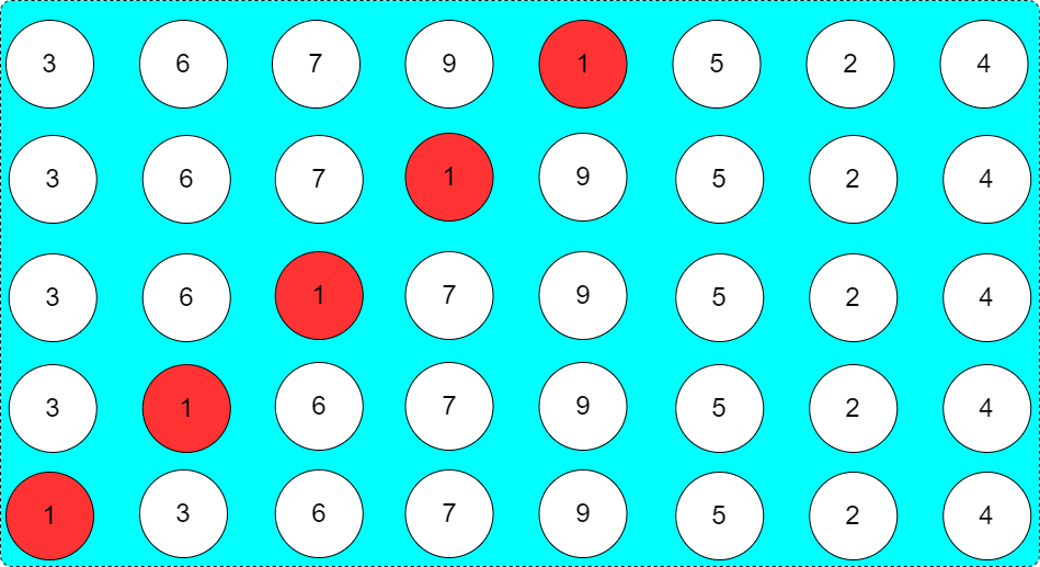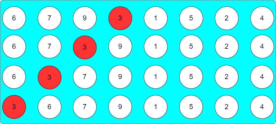 arr = [7, 6, 9, 3, 1, 5, 2, 4]