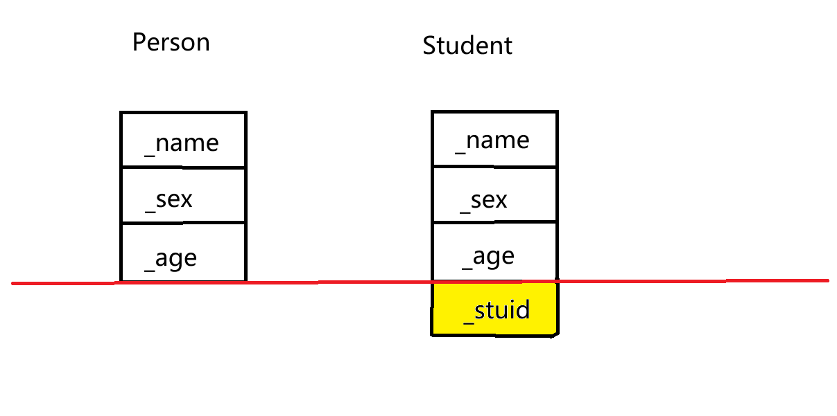 大家可以看到,Student和Teacher这两个类,除了有自己特有的部分(Sudent特有的部分为成员函数study和成员变量_stuid,Teacher特有的部分为成员函数teaching和成员变量_title)。其余部分,像什么_name,地址,都是两者共有的,两份都写,就会显得很冗余 。所以可以把共有的部分提取单独携程一个类,然后运用继承 让这个类与Student和Teacher建立联系。