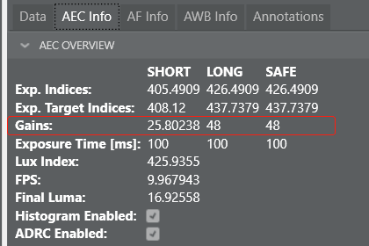 从AEC Info中可以知道,该场景safe gain=long gain=48,short gain=25.80238,说明该场景触发了ADRC gain。