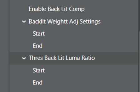 - Ratio > Thres Back Luma Ratio.start时, Backlit Weight用Backlit Weight Adj Setting.start进行weight计算,此时的backlit作用最大。