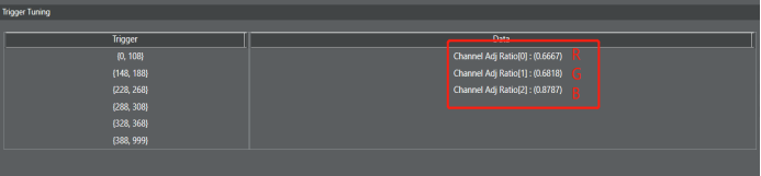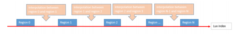 当lux index位于某个region的start和end之间时,使用当前region的参数;当lux index小于当前region的start并大于上一个region的end时,使用当前region和前一个region的参数做线性差值。