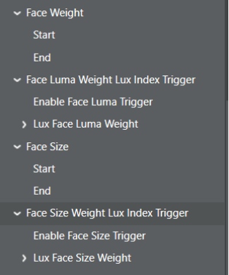 FaceSizeWeightLuxIndexTrigger:根据不同的lux index可以使用不同的face size来trigger不同weight的参数。这里定义的是基于lux index的face size。