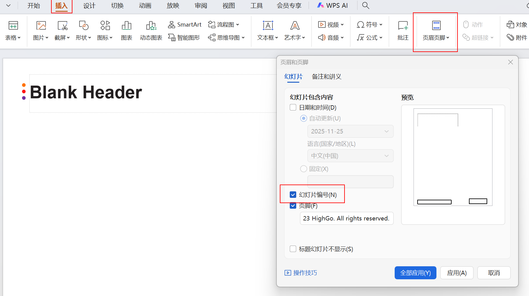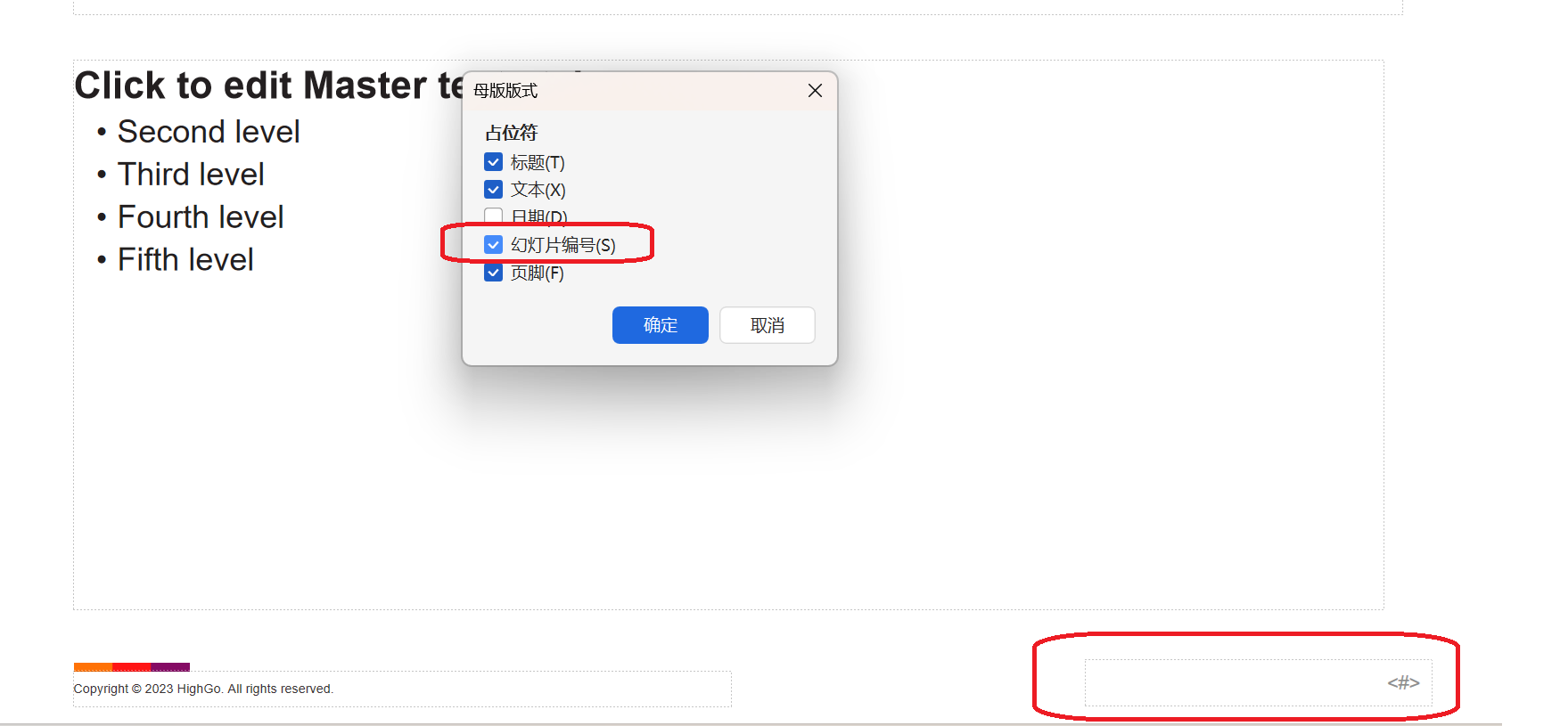 如果没有页码的那个占位符,从母版复制粘贴,可看到这个占位符即可