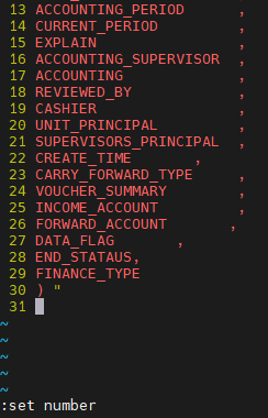 使用 vi / vim 打开:先按Esc,输入**:set nu** 或 **:set number,**按Enter(即回车键)
