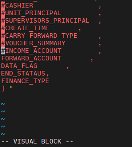 使用 vi / vim 打开:将光标移动至需要注释的首行,先按Esc,