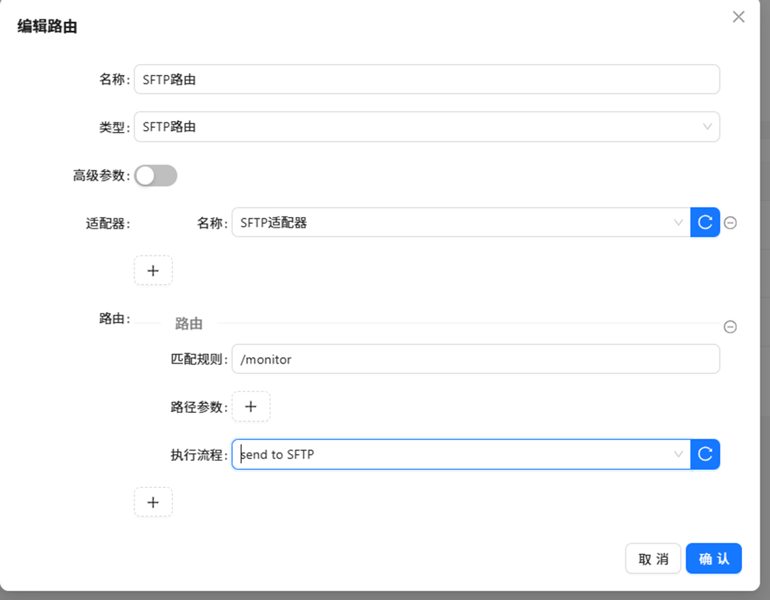 - 进入服务配置,创建SFTP适配器和配置属性: