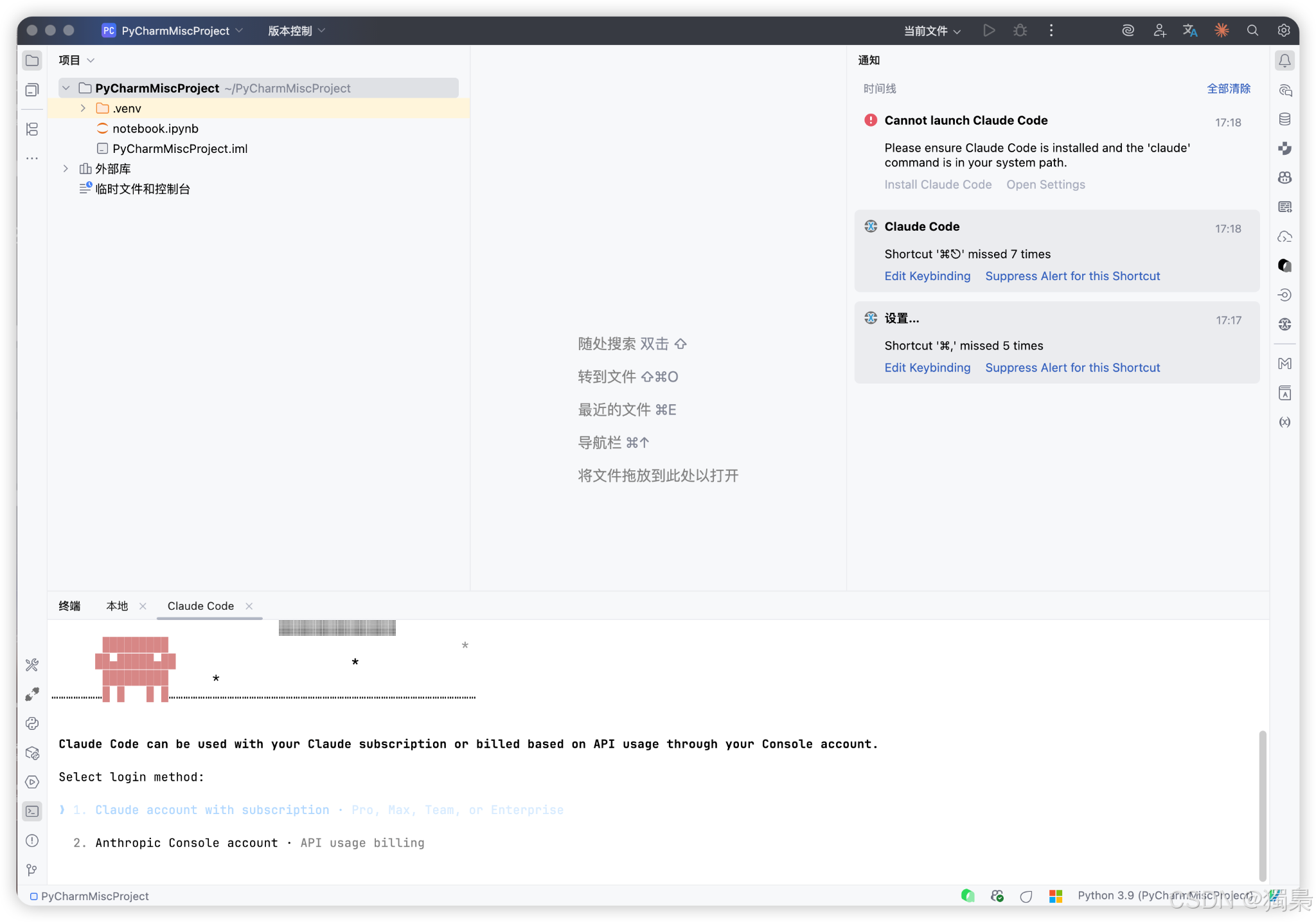 这是 JetBrains 无法启动 Claude Code 的最常见原因。