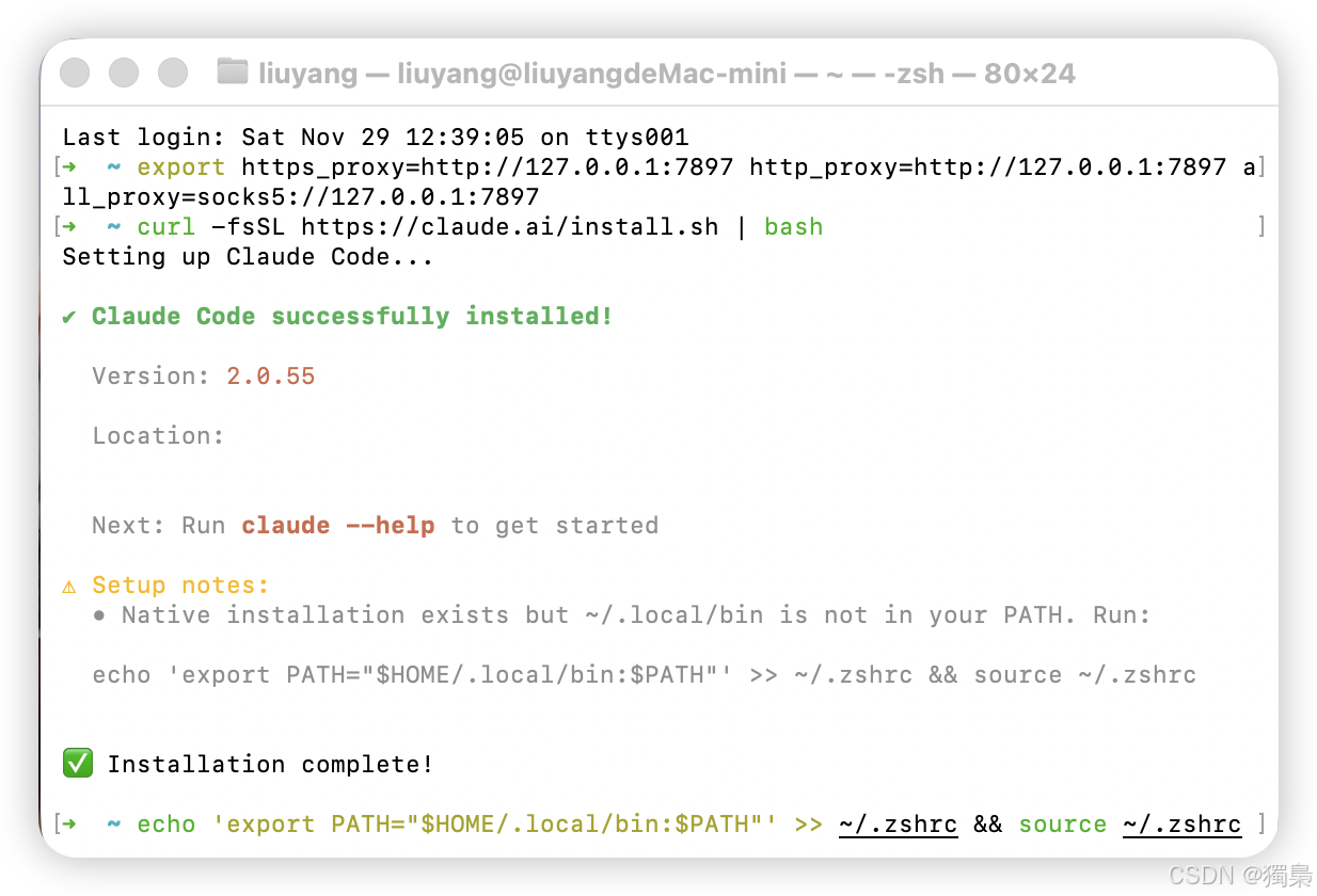 安装完 Claude 之后,默认不会自动加入 PATH。