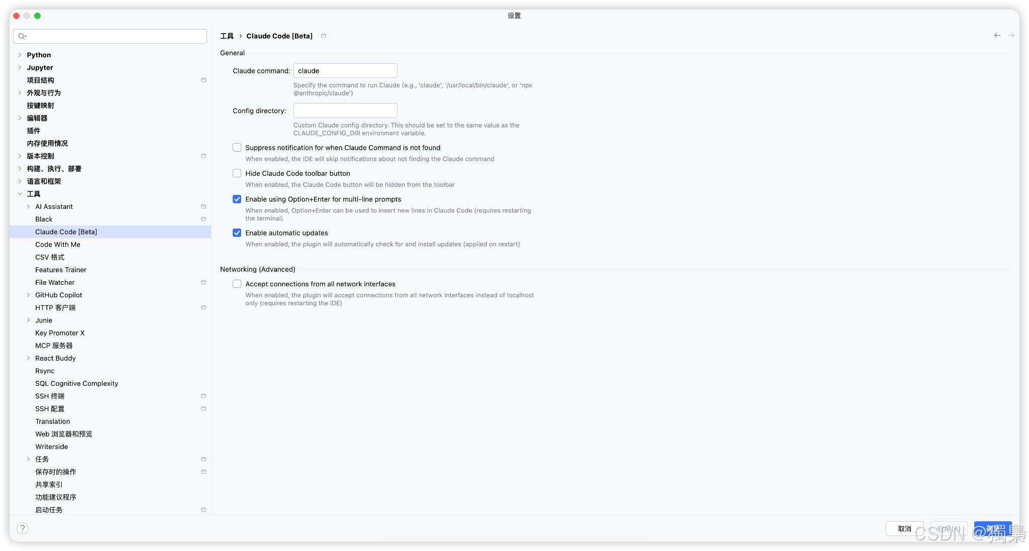 在设置里填写 claude 或其绝对路径,否则 IDE 找不到命令。