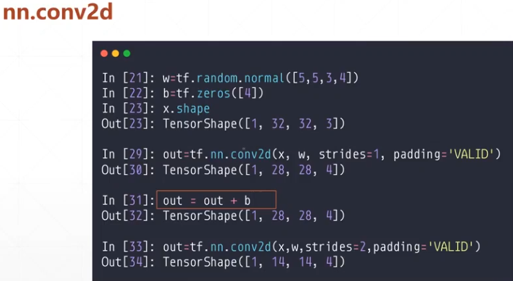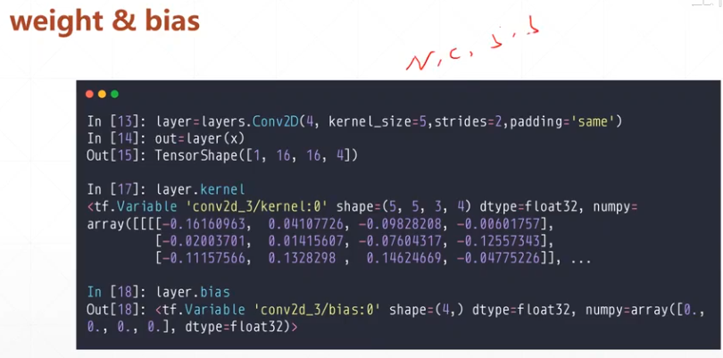 kernel [5,5,3,4] 3输入的通道数决定 4卷积核个数,输出通道数