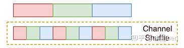 但由于feature map组与组之间相互独立,存在信息的阻隔,所以ShuffleNet提出对输出的feature map做一次channel shuffle的操作,即通道混洗,打乱原先的顺序,使得各个组之间的信息能够交互起来。
