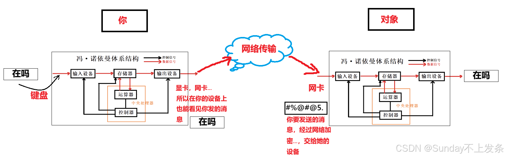 假设你给你的对象发消息(假设有对象),其实就是两台冯诺依曼体系结构在进行数据流动。