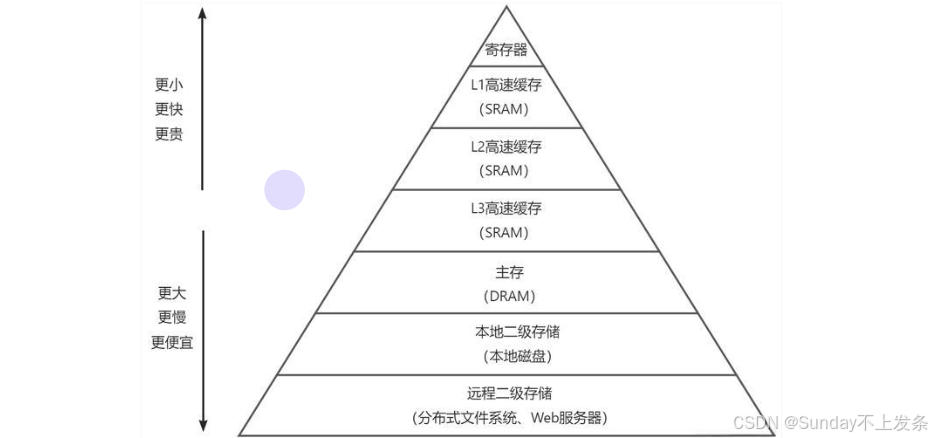 内存虽快,但与CPU还是有一定的差距,所以,又有了介于内存和CPU之间的高速存储区域,如寄存器,L1,L2和L3高速缓存。但是这类的存储数量少,空间小,也更贵。