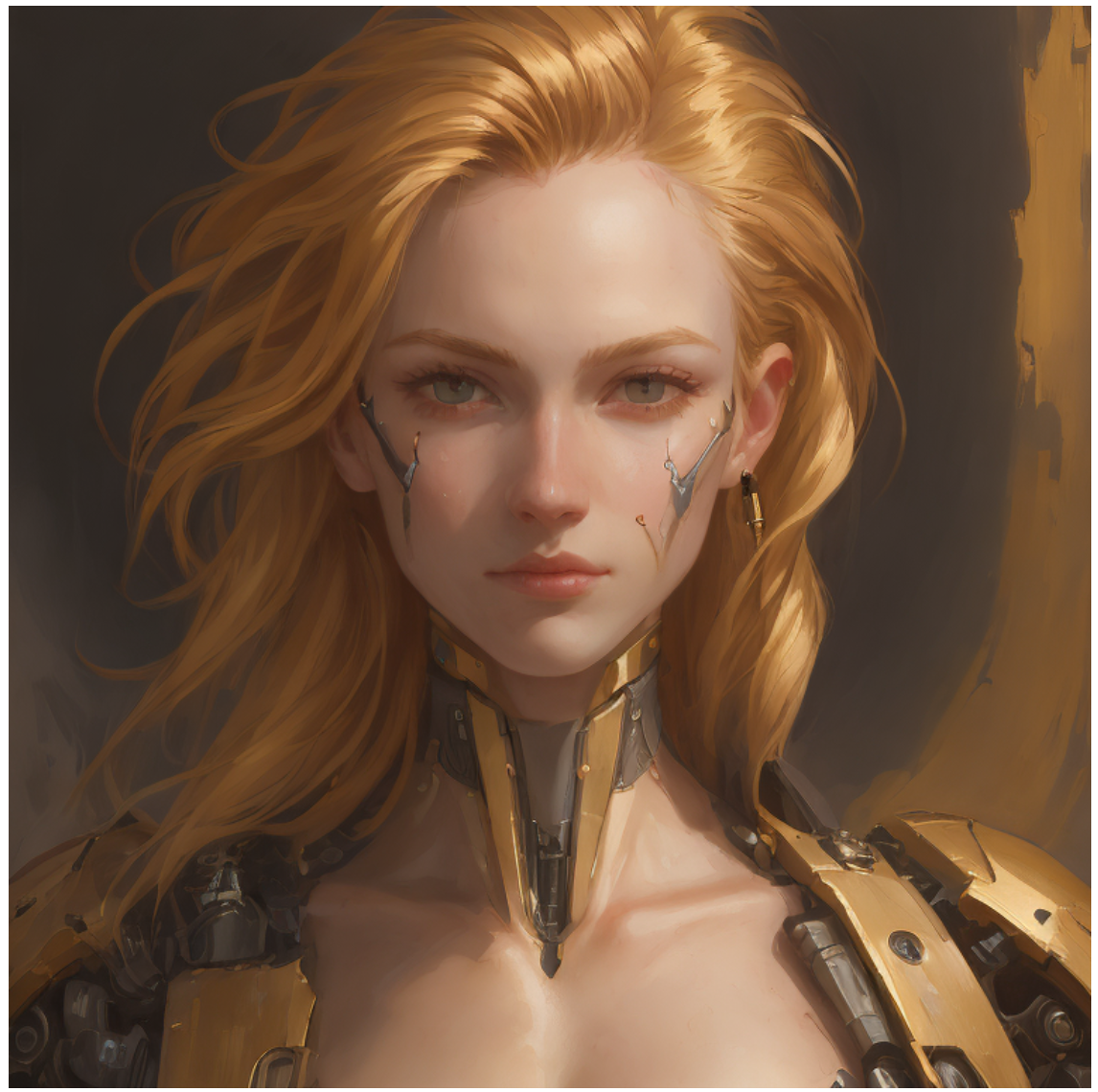 prompt = "Self-portrait oil painting, a beautiful cyborg with golden hair, 8k"
