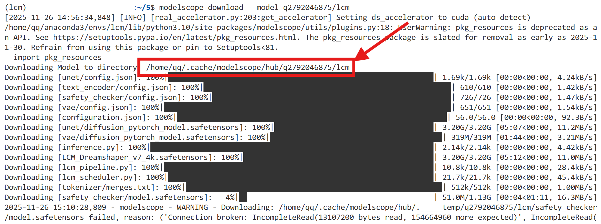 现在,假设你已经到了下载的模型的同级目录,也就是你现在在 lcm 这个文件夹旁边