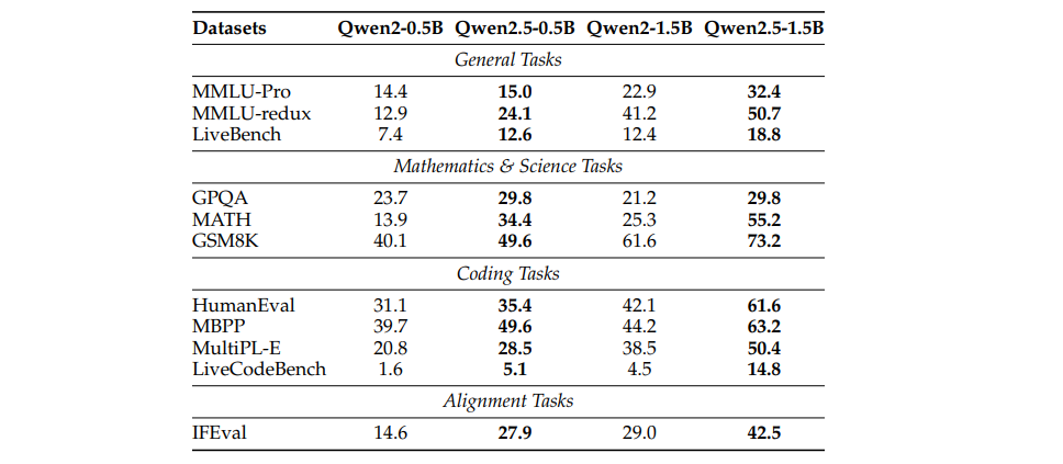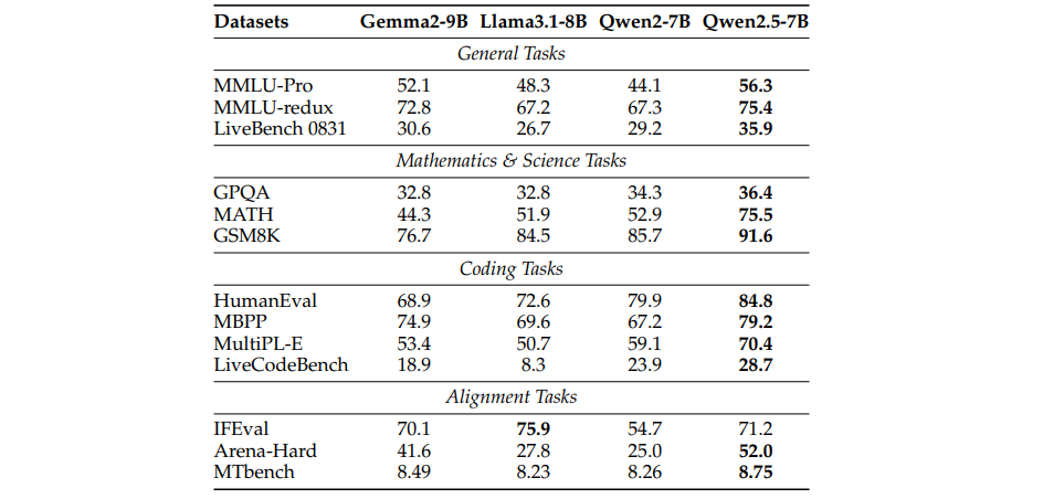 Qwen2.5在其后训练设计中引入了两项重要的改进,相比Qwen2有了显著提升: