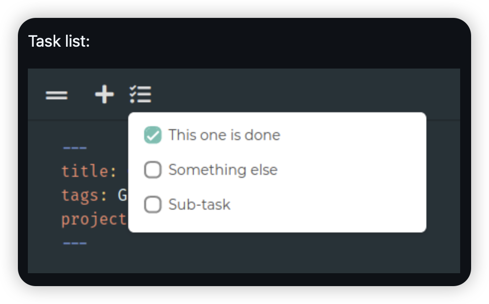 - [ ]语法自动生成复选框,已完成任务自动划线标注 -