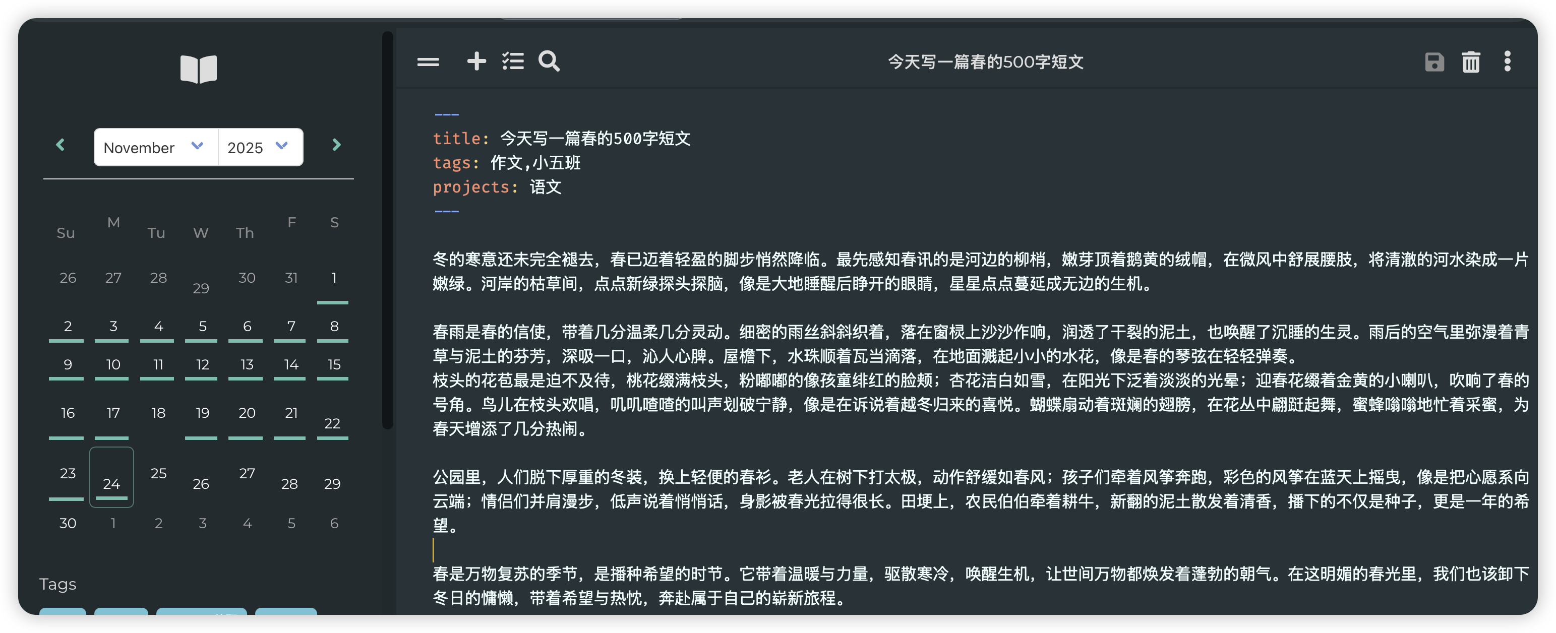 DailyNotes 是一款集笔记记录、任务管理与创意表达于一体的高效工具,非常适合每天写日记,随便记东西。以简洁直观的界面和强大的多功能体验,兼容 Markdown 语法让排版更便捷,搭配时间线视图可直观回顾每日记录,没有花里胡哨的功能,时间线+Notepad日记+笔记,支持标签和项目管理,无论是整理学习笔记、跟踪工作任务、记录生活点滴,都非常方便。