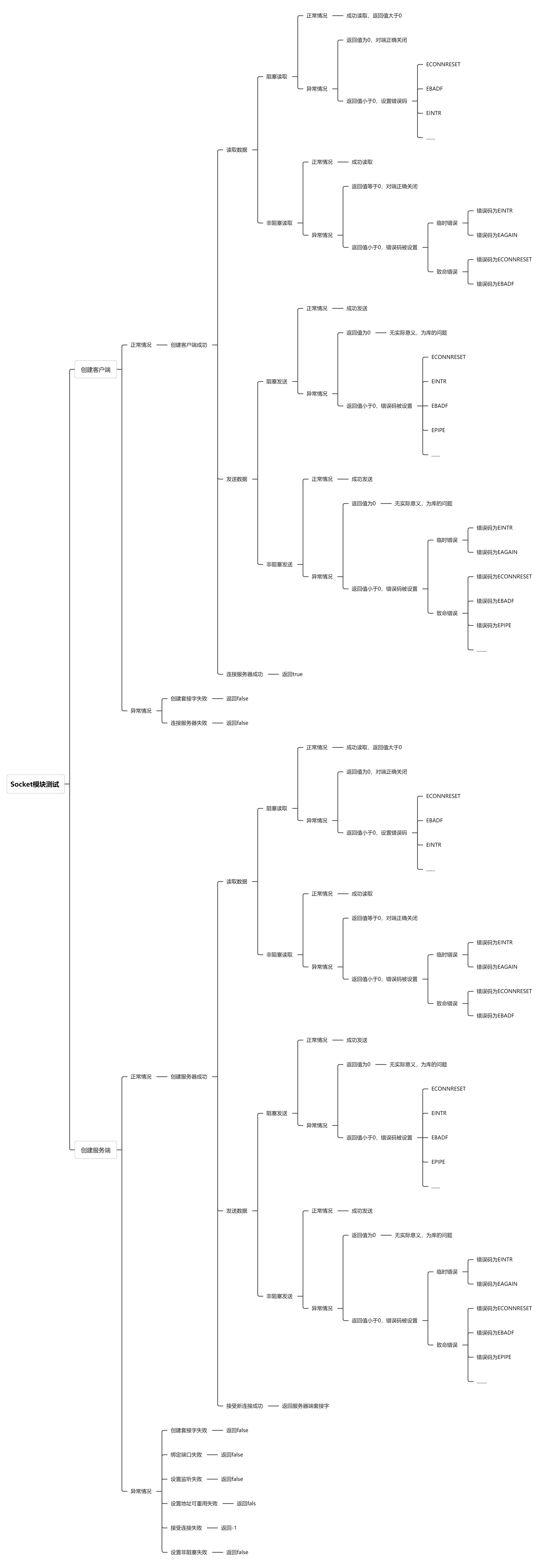 socket模块是实现套接字函数的封装,用于构建服务器端和客户端,针对这个模块,通过场景法,我设置了以下的单元测试用例: