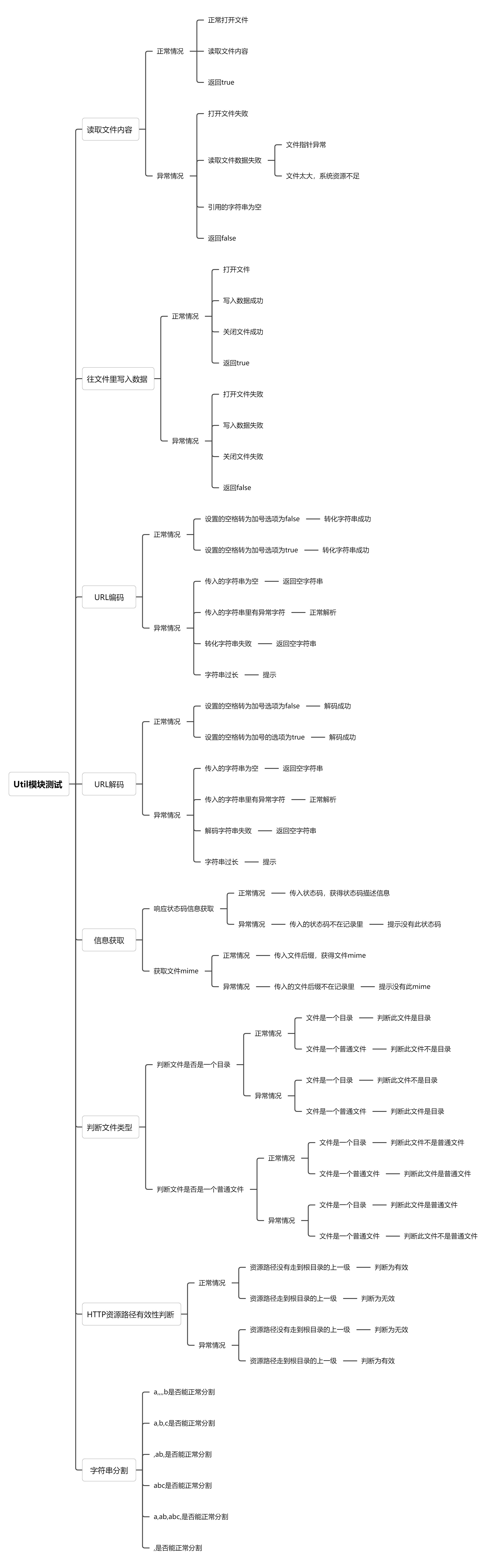 Util模块主要实现的是在HTTP中的一些零碎的功能,有往文件里写入数据,读取文件数据,URL编码和解码,状态码和文件后缀mime的获取,资源有效性判断,文件类型判断,字符串分割的功能,以下是我设计的测试用例: