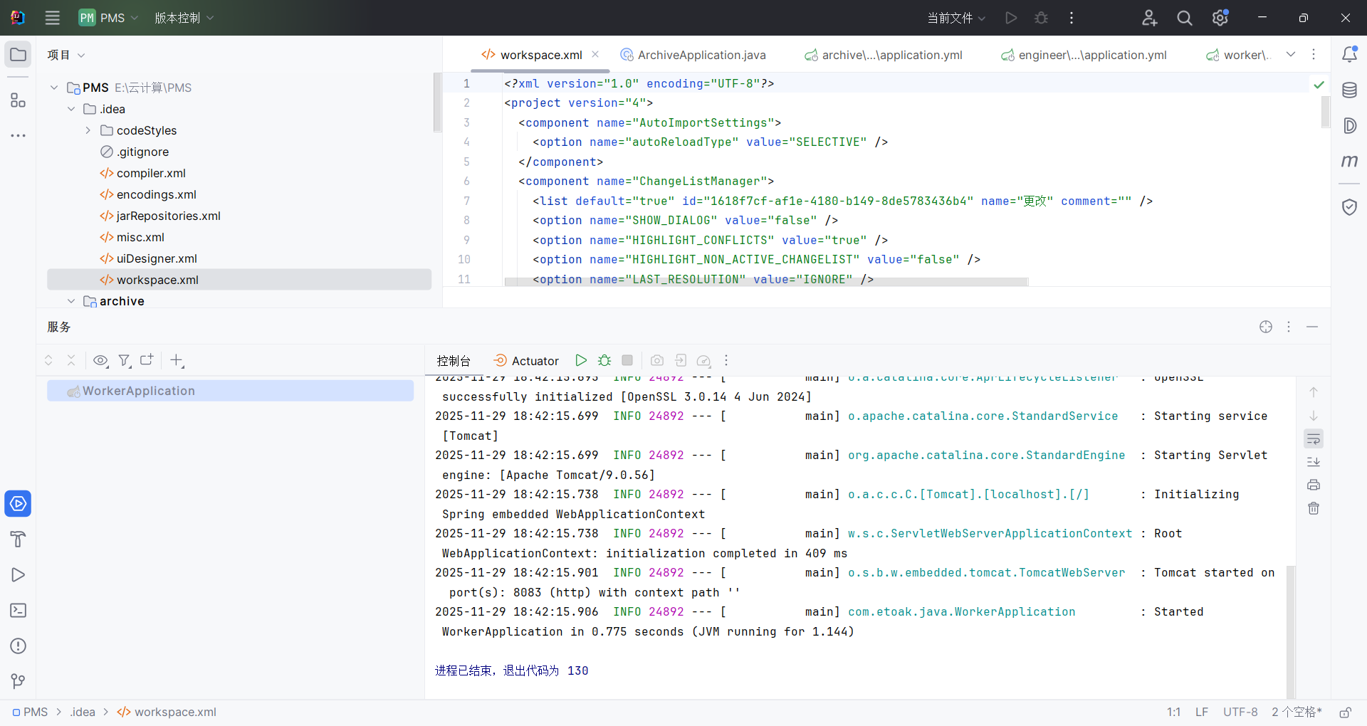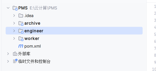 同理,创建其他两个子模块,worker和archive。因为PMS作为父工程存在,src目录没有实际作用,可以删除。最终项目格式如所示。