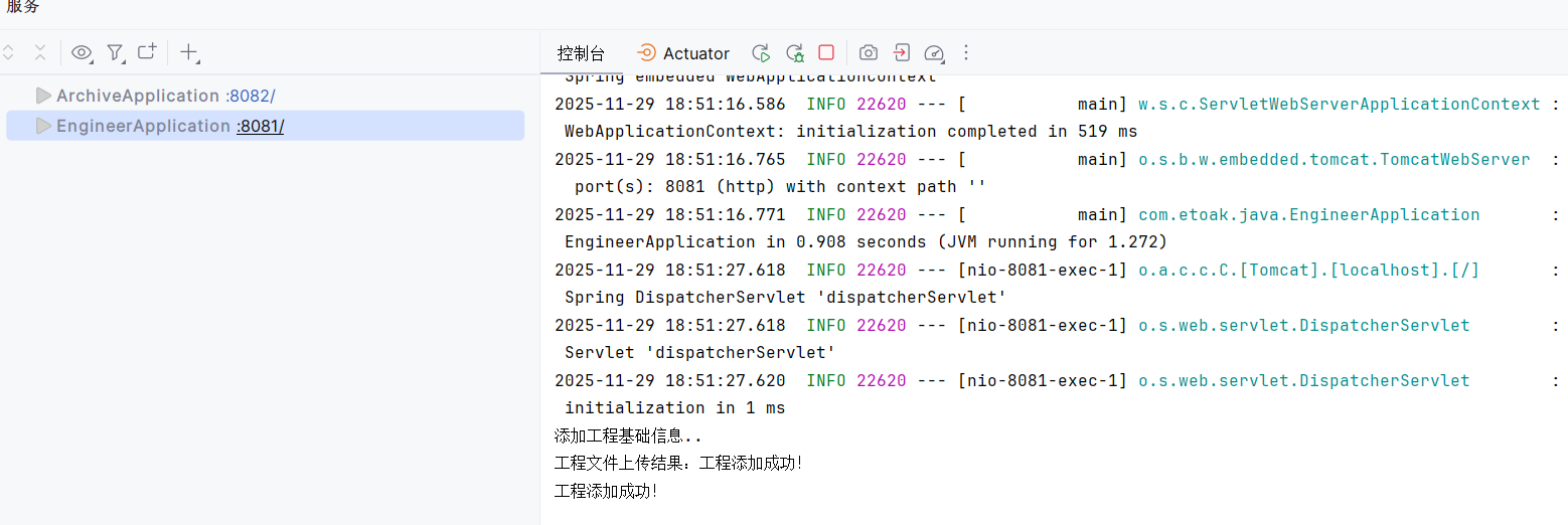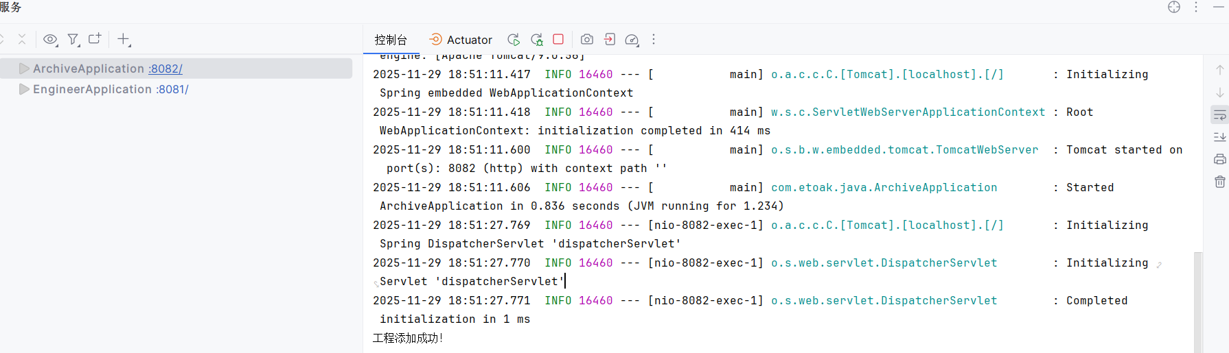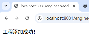 (7)启动EngineerApplication,观察控制台是否有抛出异常信息,如果没有,启动成功。之后打开浏览器,地址栏输入http://localhost:8081/engineer/add
