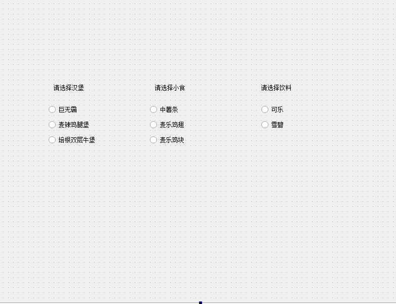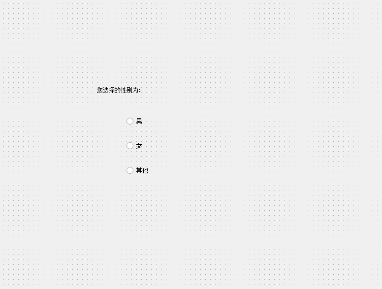 界面上有一个 "性别选择" 分组框,里面包含三个单选按钮,默认选中 "男"。点击不同的单选按钮,控制台会实时打印状态变化,并且会打印最终选中的性别。