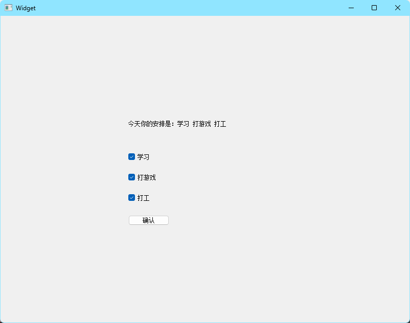| QCheckBox | 多选多场景(兴趣爱好、权限) | 无排他性;支持两态 / 三态;可批量选中 | 方形复选框 + 文本 | stateChanged(int)(三态)、toggled(bool)(两态) |