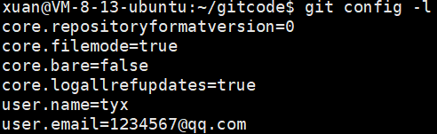 通过 git config -l 可对配置信息进行查看