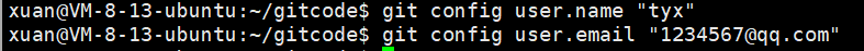 git config --global user.name "tyx"
