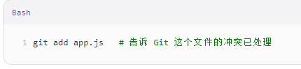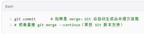 注意:如果是 rebase 冲突,解决后使用 git rebase --continue。