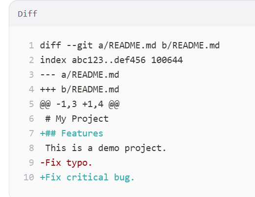 [8.git diff : 是 Git 中用于查看文件差异(differences)的核心命令。它能帮你清晰地看到:](#8.git diff : 是 Git 中用于查看文件差异(differences)的核心命令。它能帮你清晰地看到:)