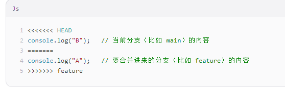 当两个分支对同一个文件的同一行(或相邻行) 做了不同的修改,Git 无法判断哪个版本是"正确"的,就会标记为冲突。