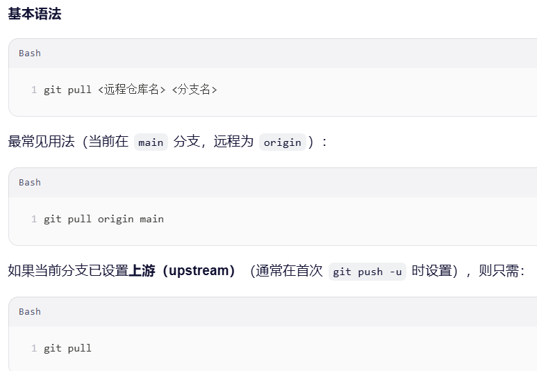 是 Git 中用于从远程仓库获取最新更改并合并到当前本地分支的命令。它实际上是两个操作的组合: