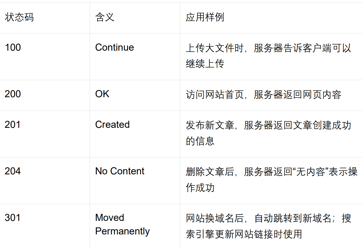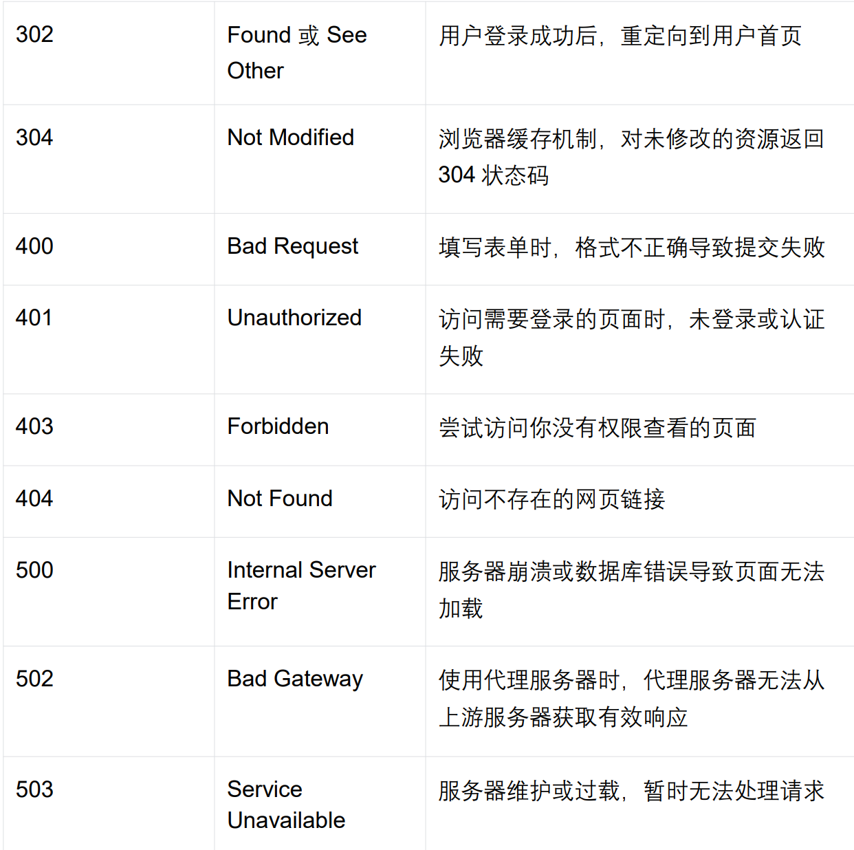 最常见的状态码, 比如 200(OK), 404(Not Found), 403(Forbidden), 302(Redirect, 重定向), 504(Bad Gateway)