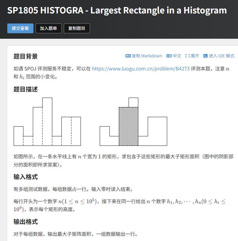 4.2 实战 2:柱状图中最大的矩形(洛谷 HISTOGRA)
