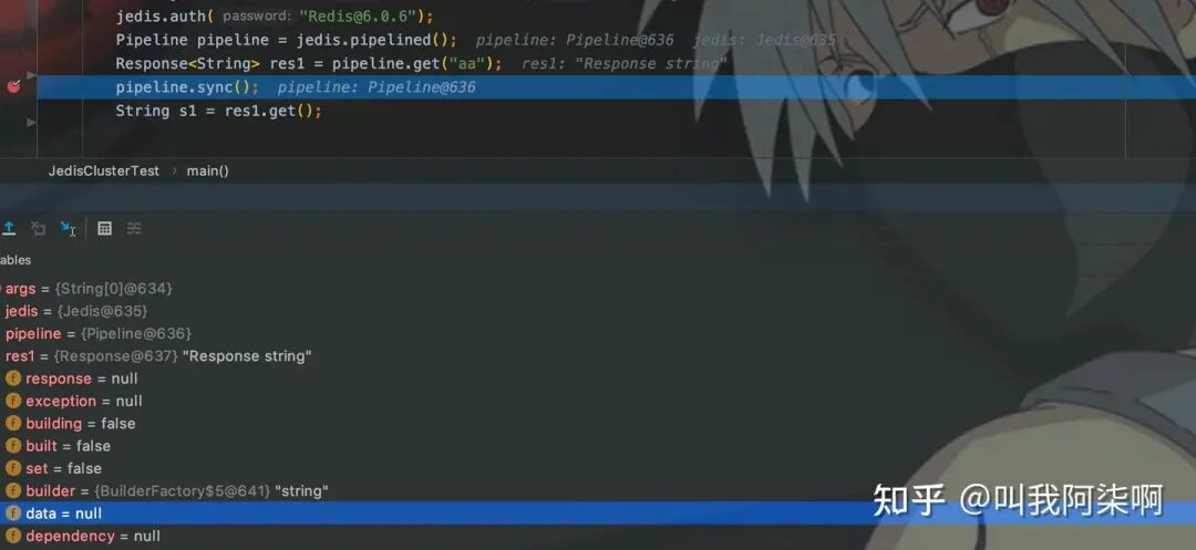 然后使用pipeline获取key为aa的value值。在sync()处打上断点,debug启动。