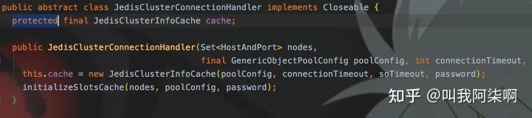 也就是说,JedisClusterConnectionHandler的子类可以获得cache,所以实现子类来获取slots。